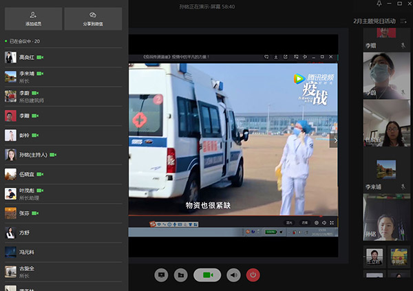 支部書記李蔚肯定了大家的學(xué)習(xí)成果,就疫情期間以及下一階段工作進(jìn)行了部署,提醒大家疫情情況趨于向好,但更要警惕麻痹思想、僥幸心理,必須繼續(xù)做好各項防護(hù)工作。同時支部黨員要快速適應(yīng)線上辦公新模式,作為中堅力量,在推動項目進(jìn)展方面發(fā)揮中流砥柱的作用,努力完成全年的生產(chǎn)目標(biāo)。